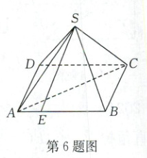 6.C[解析]如图,过点S作底面的垂线$SO$,垂足为$O$.因为四棱锥$S -ABCD$的底面是正方形,且侧棱长均相等,所以$O$为正方形$ABCD$的中心.连接$EO$,则$SO\perp EO$,所以$\angle SEO = \beta$.