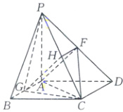 (1)在线段$AB$上是否存在一点$G$,使得$AF//$平面$PCG$? 若存在,指出点$G$的位置并证明;若不存在,请说明理由.