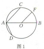 4. [2024·哈尔滨三中期中]如图1,⊙O的直径AB = 4,C,D为⊙O上两点,且∠CAB = 45°,F为$\overset{\frown}{BC}$的中点.沿直径AB折起,使两个半圆所在平面互相垂直(如图2).