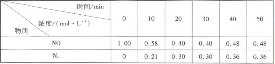 ①0 ~ 10 min内,NO的平均反应速率v(NO) = ______,当升高反应温度时,该反应的平衡常数K ______(选填“增大”“减小”或“不变”)。