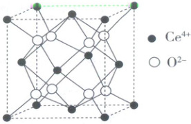 (6)$CeO_{2}$是一种重要的催化剂,其立方晶胞如图所示。若Ce、O核间最短距离为$a$ pm,则其密度为________________________$g· cm^{-3}$;$CeO_{2}$作催化剂参与反应时,Ce能在$Ce^{4+}$和$Ce^{3+}$之间改变,引起氧空位的形成,若晶体中$Ce^{4+}$与$Ce^{3+}$的个数比为4:1,则$O^{2-}$空缺率为________________________($O^{2-}$空缺率为$O^{2-}$空位数占未产生空位时$O^{2-}$总数的百分比)。