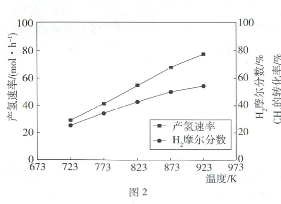 ①将$CH_{4}$、$H_{2}O(g)$以$\frac{n(H_{2}O)}{n(CH_{4})}=3$通入反应器中,温度对氢气产率的影响如图2所示,$H_{2}$摩尔分数随温度升高而变化的原因是________________________。