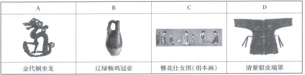 1.B 博物馆馆藏文物的材质 金代铜坐龙是铜制品,属于金属材料,A不符合题意;辽绿釉鸡冠壶是陶瓷制品,属于无机非金属材料,B符合题意;“绢”由蚕丝制成,其主要成分是蛋白质,属于有机物,C不符合题意;清紫貂皮端罩由动物毛皮制作而成,其主要成分是蛋白质,属于有机物,D不符合题意。