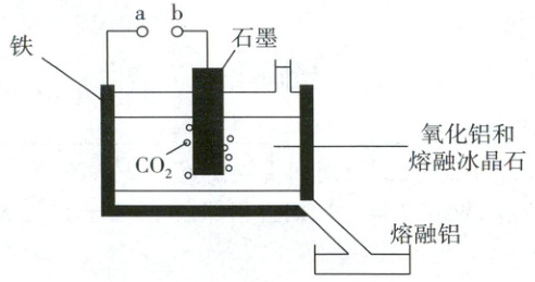12. 工业电解法制铝过程中,Al₂O₃溶解并与冰晶石发生反应:Al₂O₃ + 4AlF₆³⁻ = 3Al₂OF₆²⁻ + 6F⁻。已知Al₂OF₆²⁻在石墨电极参与反应转化为AlF₆³⁻,其装置如图所示。下列说法错误的是