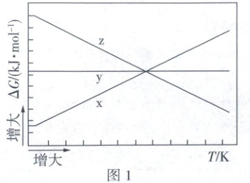 (1)反应Ⅲ. CH₂=CHCH₂Cl(g) + HCl(g) ⇌ CH₂ClCHClCH₃(g) ΔH₃ = ______kJ·mol⁻¹,此反应能够自发进行的条件是______(填“高温”“低温”或“任意温度”)。已知ΔG = ΔH - TΔS,ΔG随着温度变化的三种趋势如图1所示。能用来表示反应Ⅱ的线是______(填“x”“y”或“z”)。
