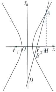 题目:A(√) 记O为坐标原点,双曲线的焦距为2c,则F₂(c, 0),|AF₂| = |DF₂| = (7/4)|F₁F₂| = (7/2)c,由|OF₂| = c,|DF₂| = (7/2)c,根据勾股定理得|OD| = √((7/2)c)² - c²) = (3√5/2)c,所以kAF₂ = tan ∠AF₂x = tan ∠OF₂D = |OD|/|OF₂| = ((3√5/2)c)/c = 3√5/2。