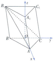 因为点$A_{1}$在平面$ABC$上的射影为$BC$的中点$O$,所以$A_{1}O\perp$平面$ABC$,