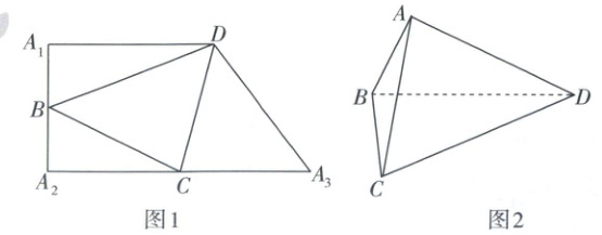 11. 如图1,在直角梯形$ A _ { 1 } A _ { 2 } A _ { 3 } D $中,$ A _ { 1 } D // A _ { 2 } A _ { 3 } $,$ A _ { 1 } A _ { 2 } \perp A _ { 1 } D $,$ A _ { 1 } D = 5 $,$ A _ { 1 } A _ { 2 } = 4 $,$ B $,$ C $分别为$ A _ { 1 } A _ { 2 } $,$ A _ { 2 } A _ { 3 } $的中点,现把$ \triangle A _ { 1 } B D $,$ \triangle A _ { 2 } B C $,$ \triangle A _ { 3 } C D $分别沿$ B D $,$ B C $,$ C D $折起,使得点$ A _ { 1 } $,$ A _ { 2 } $,$ A _ { 3 } $重合为一点$ A $,得到如图2所示的四面体$ A B C D $,则下列说法正确的是