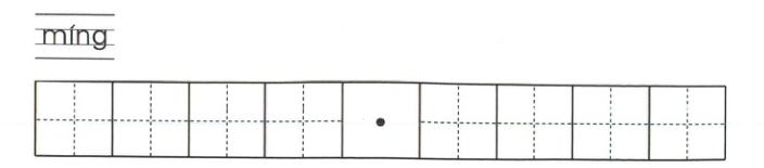 2. 请将展板标题“míng 记历史·面向未来”中缺少的汉字根据拼音补充出来,并将八个汉字工整地书写在田字格内。