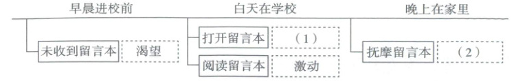本题考查考生对人物心理的梳理。解答本题,考生要抓住图表中给出的时间及留言本的提示信息,从文中锁定对应的答题区域,并找出关键句子进行作答。
