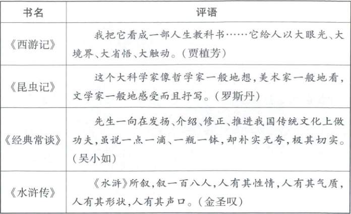 6. (2025 乐山)以下是小嘉从课本“名著导读”中摘抄的名家评语,请你从中选取一则,结合名著内容和你的阅读体验,对评语加以阐述。