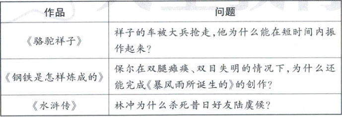 5. (2025 眉山)子瞻中学的一次名著阅读交流会上,同学们提出了一些疑问,请从中任选一个,结合你的阅读体验交流探讨。要求:结合作品具体事件,体现对人物的理解。