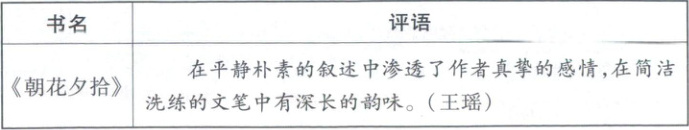 6示例一:《朝花夕拾》以简洁舒缓的文字描述鲁迅从幼年到青年时期的生活道路和心路历程,抒发了作者对往昔亲友和师长的怀念之情,既有温情与童趣,也有对人情世故的洞察。
