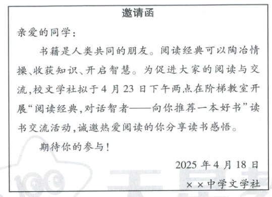 1. (2025 连云港)下面邀请函在语序和格式上各有一处不当,请分别修改。