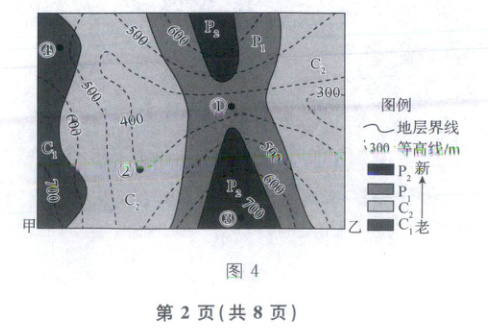 图 4 为“某区域地质简图”。据此完成 9~10 题。
