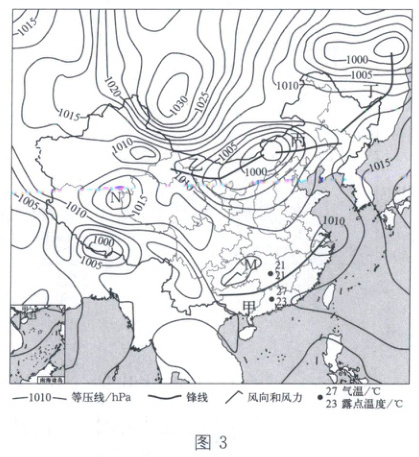 图 3 为“5 月 16 日某时亚洲部分地区地面天气形势图”。据此完成 6~8 题。