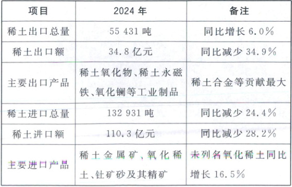 稀土是高科技产业的重要资源,是维护国家安全和提升核心竞争力的关键要素。我国稀土储量约 4400 万吨,占全球总储量的 33.8%。2024 年 5 月,我国正式实施“一批一证”稀土出口许可制度。表 1 示意 2024 年我国稀土进出口情况。据此完成 3~4 题。