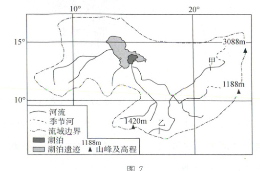 (2)分析沿河引水灌溉对乍得湖补给水源在数量上的变化。(6分)
