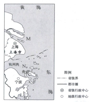随着经济快速发展,径流挟带大量陆源污染物汇入河口,导致海水中的溶解性无机氮(DIN)浓度超标,威胁生态安全。长江口及其附近海域 DIN 浓度的时空分布与径流、潮流等密切相关。图 3 示意监测点 M、N 的位置及其 DIN 浓度变化。据此完成 6~7 题。