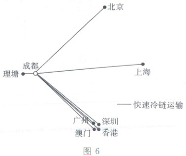 四川省理塘县位于青藏高原东南缘,平均海拔 4300 余米。近年来,理塘县积极与线上线下一体化销售平台合作,成功把小番茄、水果黄瓜、夏季草莓等特色优质农产品以较高的价格销往国内部分城市(图 6)。2022 年,理塘县与成都市合作建设的“高原上云仓”前置仓正式投入运营。据此完成 13~15 题。