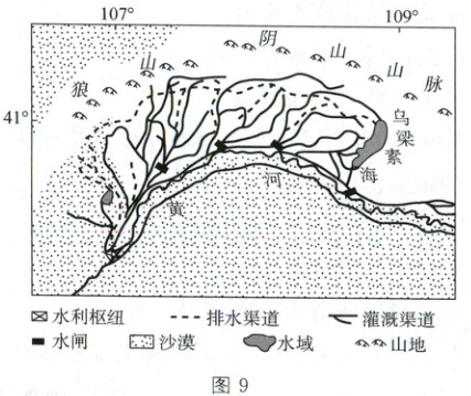 (1)说明排灌系统对河套灌区农业发展的保障作用。(4 分)