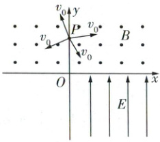 (3)沿$x$轴正方向发射的粒子,从匀强磁场进入匀强电场时,经过$x$轴上的点的横坐标$x$。