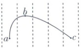6. 如图所示,间距相等的竖直虚线为一匀强电场的等势线,一带正电小球从$a$点竖直向上射入电场后,其运动轨迹如图中实线所示。已知$b$点为小球运动轨迹的最高点,$a$、$c$在同一水平面上,则