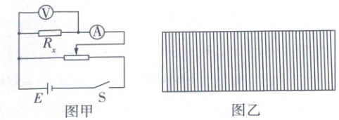 $\Omega$。(3)将改装后的电压表重新接入图甲所示的电路。在某次测量中,若$R_x$两端电压为4.5 V,电流表的读数为0.50 A,则由此测得该金属丝的电阻率为$\rho =$