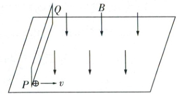14.【2026届恩施高三考试】(12分)如图所示,绝缘水平桌面上放有一长度为$l$的竖直绝缘挡板$PQ$,整个装置处在方向竖直向下的匀强磁场中,磁感应强度大小为$B$。一质量为$m$、电荷量为$q(q>0)$的带电小球紧贴挡板$P$端放置。现给小球一垂直挡板向右的速度$v$,经过一段时间,小球击中挡板右侧面上的某点$N$(图中未标出)并以速度$v$反弹,与此同时,挡板也以速度$v$向右匀速平移,不计一切阻力。求: