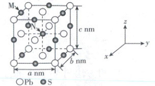 [深度解析]Pb位于晶胞的顶点和面心,有8×$\frac{1}{8}$+6×$\frac{1}{2}$= 4个,S位于晶胞的体心和棱心,有12×$\frac{1}{4}$+1 = 4个,所以该物质的化学式为PbS,A错误;该晶胞中含4个PbS,质量为$\frac{4×(207 + 32)}{N_A}$g,体积为abcnm³ = a²c×10⁻²¹cm³,所以该晶体密度ρ=$\frac{m}{V}$=$\frac{\frac{4×(207 + 32)}{N_A}g}{a²c×10⁻²¹cm³}$=$\frac{956}{N_A×a²c×10⁻²¹}$g·cm⁻³,B正确;由坐标系可知,M的分数坐标为($\frac{1}{2}$,0,1),C错误;M、N处S的核间距=$\sqrt{(\frac{a}{2})² + (\frac{c}{2})²}$nm=$\frac{\sqrt{a² + c²}}{2}$nm,D错误。