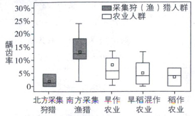 1. 下图是学者统计的中国境内新石器时代不同经济类型人群的龋齿率。据图可知