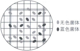 9. 某同学用盛有10mL适宜浓度培养液的锥形瓶对酵母菌进行长期培养。某次抽样检测中,将培养液稀释100倍,再用等体积台盼蓝染液染色后,最终,在显微镜下观察到如图视野。使用的血细胞计数板规格为1mm×1mm×0.1mm,16×25。下列说法正确的是