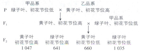 D.若用$F_{2}$中绿子叶、初花节位高的菜豌豆进行自交,子代表型比例为3:1