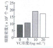 [深度解析]单克隆抗体的制备过程中,需要将骨髓瘤细胞和已免疫的B淋巴细胞融合(涉及动物细胞融合技术),然后对筛选出的杂交瘤细胞进行培养(涉及动物细胞培养技术),A正确;克隆化培养得到的杂交瘤细胞产生的抗体,还需要进行抗体检测,只有能与PEDV发生特异性结合的抗体才能抗PEDV,B正确;分析题图,当VC浓度为10ng·mL⁻¹时,杂交瘤细胞密度最高,说明该浓度VC能显著促进杂交瘤细胞增殖,C正确;与0ng·mL⁻¹VC组相比,20ng·mL⁻¹VC组杂交瘤细胞密度较高,但抗体效价较低,说明20ng·mL⁻¹VC并非通过抑制杂交瘤细胞增殖降低抗体效价,D错误。