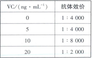 D.20ng·mL⁻¹VC通过抑制细胞增殖降低抗体效价