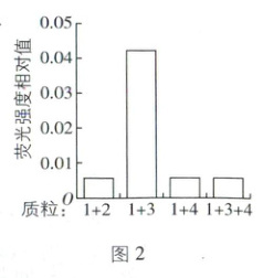 16. T蛋白和J蛋白是转录调控因子。为研究T、J蛋白对S蛋白基因表达的调控作用,研究人员构建了图1所示四种质粒,将质粒1与其他质粒组合后,通过农杆菌转化法分别导入烟草细胞,检测发现各组REN表达量基本不变,但荧光强度相对值如图2所示。下列叙述正确的是