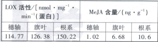 D.根据表格数据,LOX最可能是控制MeJA合成的基因