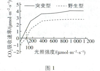(3)减小(1分,若判断错误,则下一空不计分)光照强度为100μmol·m⁻²·s⁻¹时,叶肉细胞的光合作用速率等于呼吸作用速率,但由于存在只进行呼吸作用的细胞,野生型水稻植株的光合作用速率小于呼吸作用速率