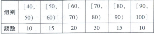 某校被评为全国首批智能研修平台规模化应用抽查了100名学生的成绩(单位:分),将他们的成绩分成以下6组:$ [ 40, 50 ) $,$ [ 50, 60 ) $,$ [ 60, 70 ) $,…,$ [ 90, 100 ] $,统计结果如下面的频数分布表所示.
