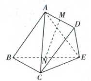 在多面体$A B C D E$中,平面$A B E \perp$平面$B C E$,$B C \perp C E$,$\angle E B C = 3 0 ^ { \circ }$,$B E = 2$,$\triangle A B E$是以$B E$为斜边的等腰直角三角形,四边形$A B C D$为平行四边形,$M$,$N$分别为$A D$,$B E$的中点.