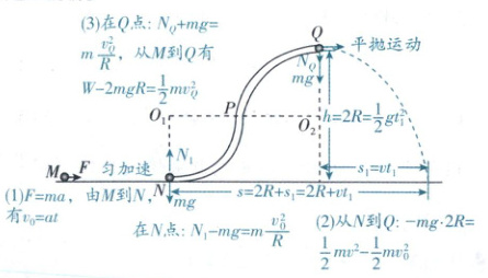 从M到Q,根据动能定理可得$W - 2mgR = \frac{1}{2}mv_{0}^{2}$