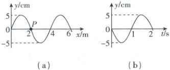 【深度解析】由图(a)可知波的振幅为$A = 5cm$,A错误;由图(b)可知1s时质点P沿y轴正方向运动,根据“同侧法”可知波向右传播,B错误;由图(a)可知波长为$\lambda = 4m$,由图(b)可知周期为$T = 2s$,波速$v = \frac{\lambda}{T} = \frac{4m}{2s} = 2m/s$,C正确;经过一个周期,质点P运动的路程$s = 4A = 20cm$(易错点:注意区分质点运动的路程和位移),D错误。