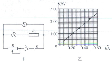 (1)实验过程中,改变滑动变阻器的滑片位置,并记录两电表的读数,作出如图乙所示的$ U - I $图像,可得金属丝的阻值为