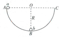 (1)设a与b第一次碰撞前一瞬间速度大小为$v_{0}$,根据机械能守恒定律可得$mgR = \frac{1}{2}mv_{0}^{2}$ (2分)