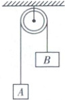 8. 如图所示,轻质定滑轮下方通过轻绳悬挂重物 A 和重物 B,悬挂滑轮的轻质细线竖直。开始时,重物 A、B 处于静止状态,释放后 A、B 开始运动。已知 $ m_B = 2m_A = 2m $,摩擦阻力和空气阻力均不计,重力加速度为 g,当 B 的位移大小为 h 时,下列说法正确的是 (