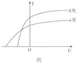 9. 丹麦物理学家玻尔意识到了经典理论在解释原子结构方面的困难,在普朗克关于黑体辐射的量子论和爱因斯坦关于光子概念的启发下,提出了自己的原子结构假说。一群处于 $ n = 4 $ 能级的氢原子,向低能级跃迁过程中能发出多种不同频率的光,将这些光分别照射到图乙中阴极 K 的金属上,只能测得两条光电流与电压的关系曲线,如图丙所示,已知氢原子的能级图如图甲所示,根据玻尔理论对氢原子光谱的解释,下列说法正确的是 (
