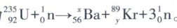 【深度解析】核反应方程需满足质量数守恒和电荷数守恒,由电荷数守恒有92 + 0 = 56 + y + 0,解得y = 36,由质量数守恒有235 + 1 = x + 89 + 3,解得x = 144,B正确。