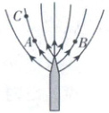 1. 通常高大建筑物上要安装避雷针。当带电云层接近时,避雷针上的感应电荷在其附近产生电场,其电场线如图所示。A、C是同一电场线上的两点,B点与A点关于避雷针所在直线对称,则 (