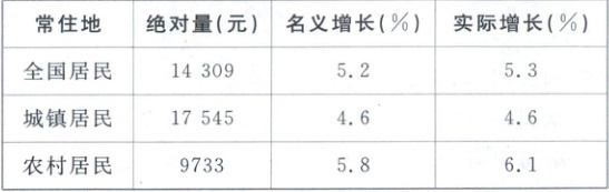 常住地 绝对量(元) 名义增长(%) 实际增长(%)