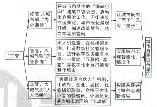 (3)结合材料,运用《政治与法治》知识,说明T市是如何通过“三管”让城市有高度更有温度的。(11分)